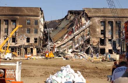 zaznamenali jedine výbuch. Okrem toho, časť budovy pentagonu, ktorú zdemolovali